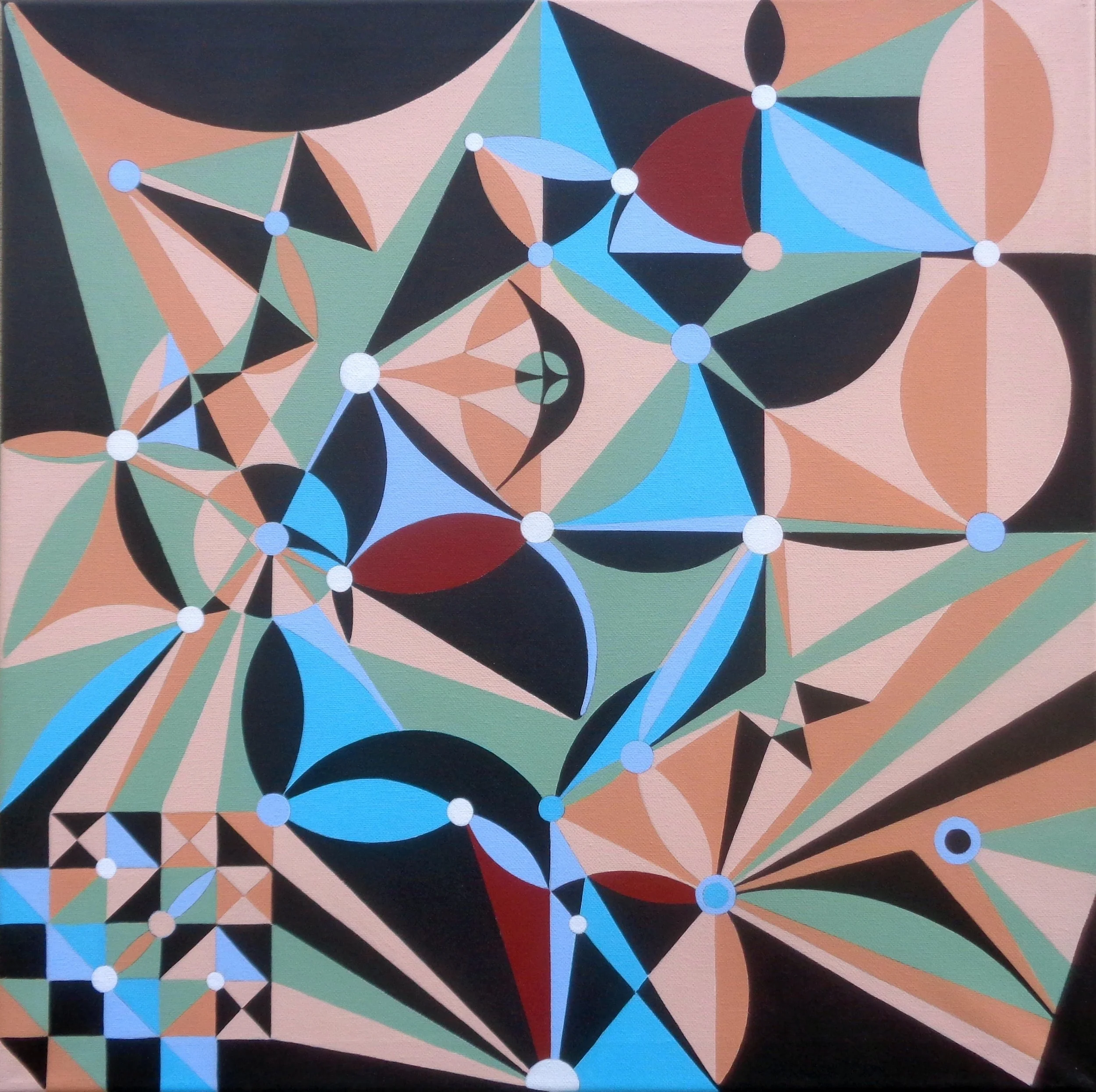 The possibilities in my artwork are always expanding and evolving. My creative source is like the center of a wheel with spokes that reach out to all areas of life: literature, philosophy, history, science, nature and mythology. As the artist I seek nourishment and inspiration from the whole. The journey and process of learning and growing itself serves as the incentive and inspiration. My handmade acrylic paintings are the fruit of my attention and experience.